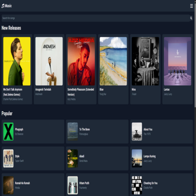Website Music Player dengan fitur kontrol pemutaran lengkap dan desain responsif.